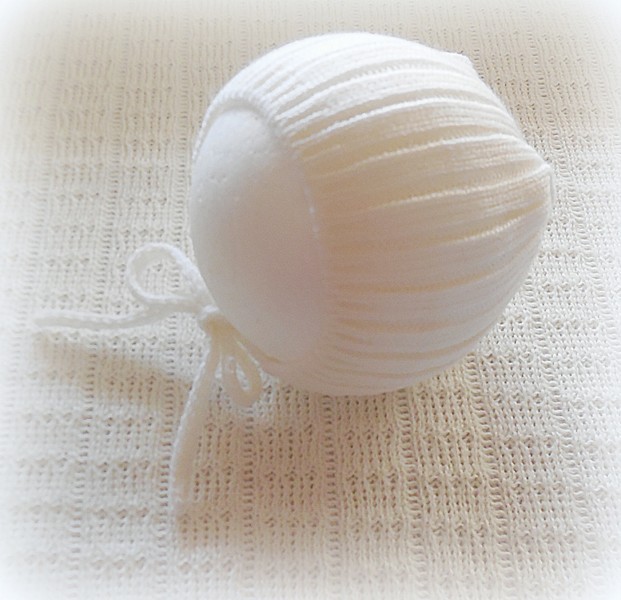 Touca canelada com cordão.